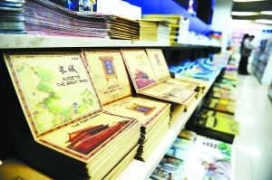 百万庄图书大厦在售的《手绘北京地图》。 本报记者 和冠欣摄