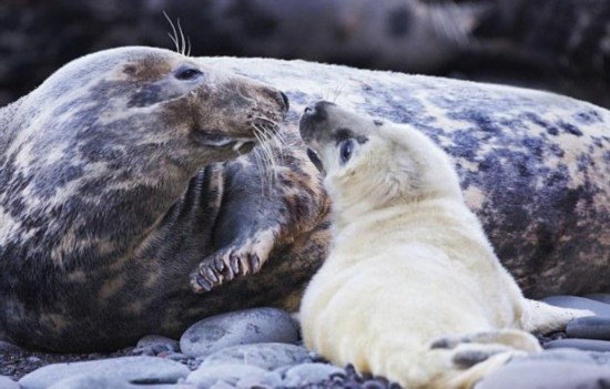 高清:海豹母亲深情吻子 抚摸对视萌态可掬【4】