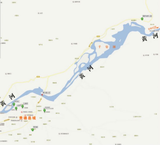 贵德县位于青海省东部,隶属海南藏簇自治州。黄河由西向东贯穿全境,水量充沛,水流清澈,在不同的光线下幻出青碧绿蓝等色彩,为一奇景,“天下黄河贵德清”一语因此天下闻名。贵德是黄河上游建制最早的县,历史悠久,至今还保存明代城垣,其中玉皇阁为国家重点保护文物单位,另有南海殿、乜那寺等汉地佛教、藏传佛教以及回教名胜。贵德人由汉藏土回萨拉等民族混居构成,形成统一和谐却又丰富多彩的文化景观。