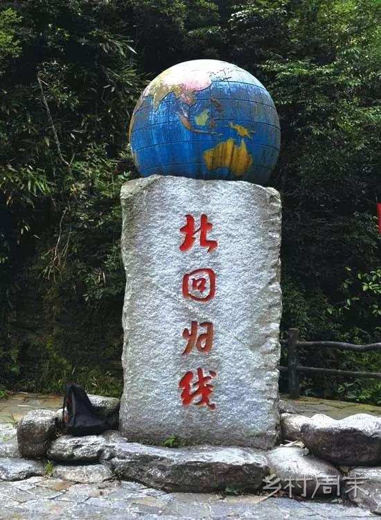 地球模型在标志塔的顶部,中有一直径24厘米的不锈钢管贯穿模型表面。地面上画出的长线将无形的北回归线变为有形,脚跨回归线,则一脚在温带,一脚在亚热带。(本文为原创,转载请注明来源:《乡村周末》)