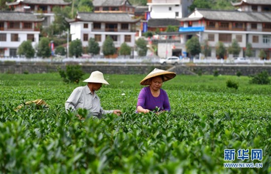 10月17日,茶农在湖北省宣恩县水田坝村采摘秋茶。金秋时节,湖北恩施土家族苗族自治州百余万亩茶园间人头攒动,茶农们抓住时节,抢采今年最后一茬鲜叶。茶叶作为当地推进精准扶贫的支柱产业,通过规模化、精细化、标准化、有机化种植,已成为山区农民增收致富的主要渠道。新华社发(宋文 摄)