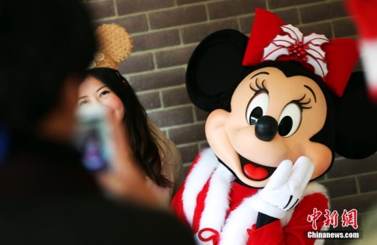 12月15日,上海迪士尼度假区开启的迷人圣诞季吸引众多游客慕名而来。米奇和他的朋友们换上了特别设计的圣诞服装笑迎四方客人。中新社记者 汤彦俊 摄