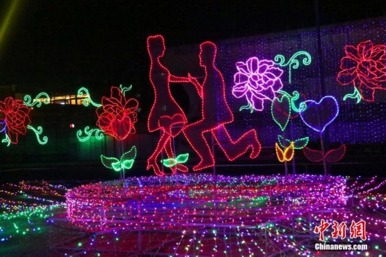 正月,甘肃金昌打造的“点亮花城·浪漫金昌”的大型梦幻灯光节流光溢彩,花灯造型更是美轮美奂,观花灯,拍花灯,浪漫的气息令人流连忘返。杨志刚 摄