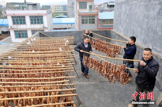 【新春走基层】组图:春节将至 成都街头腊味飘香