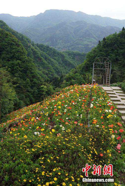 汶川县水磨镇仁吉喜目谷景区美丽风光。 中新社记者 毛建军 摄