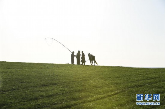 西乌珠穆沁旗草原上的牧民(7月21日摄)。 盛夏时节,内蒙古锡林郭勒草原一碧千里,遥接天际。蓝天白云之下,牛羊悠闲自在,马群奔驰其中,风光旖旎。 新华社记者 刘磊 摄