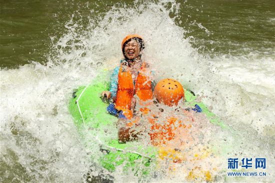 8月8日,游客在湖北省宜昌市秭归县九畹溪景区漂流。