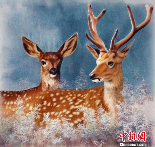 湘绣《梅花鹿》。 湖南省湘绣研究所供图