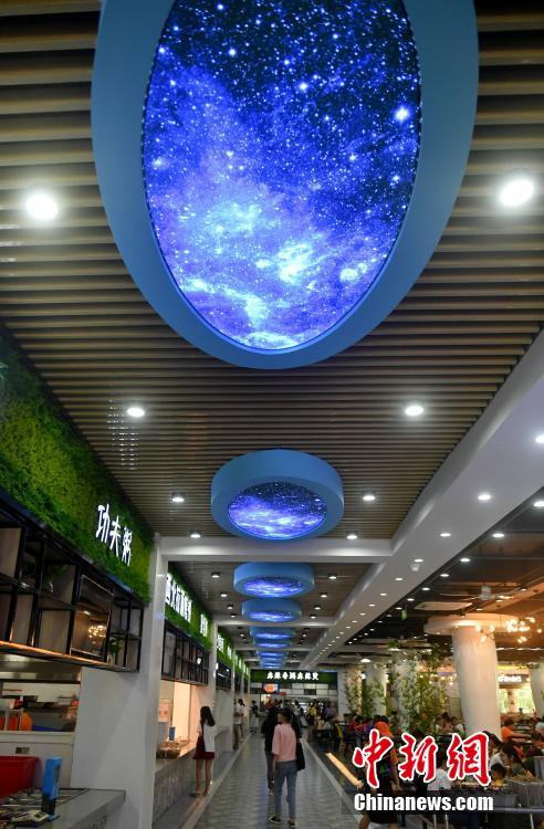 9月5日,福建师范大学的翠竹园餐厅装修成“星空”主题风格,吸引了许多同学前来体验在“星空”下用餐的感觉。中新社记者 吕明 摄