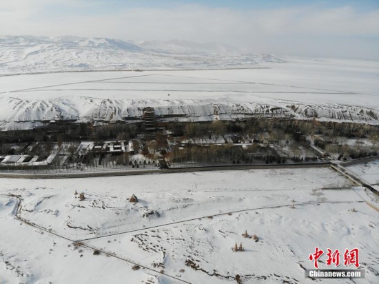 12月5日,冬日的甘肃敦煌莫高窟现“雪色胜景图”。中新社记者 杨艳敏 摄