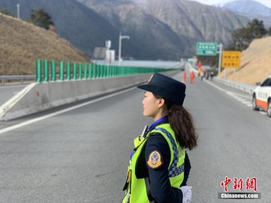 2018年拉林高等级公路全线通车。据介绍,公路通车后拉萨至林芝通勤时间被缩短约四小时。图为该公路上的女性路政执法人员。中新社记者 杨程晨 摄
